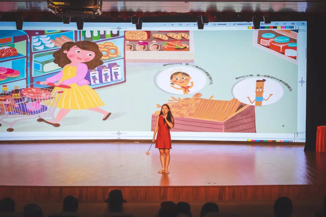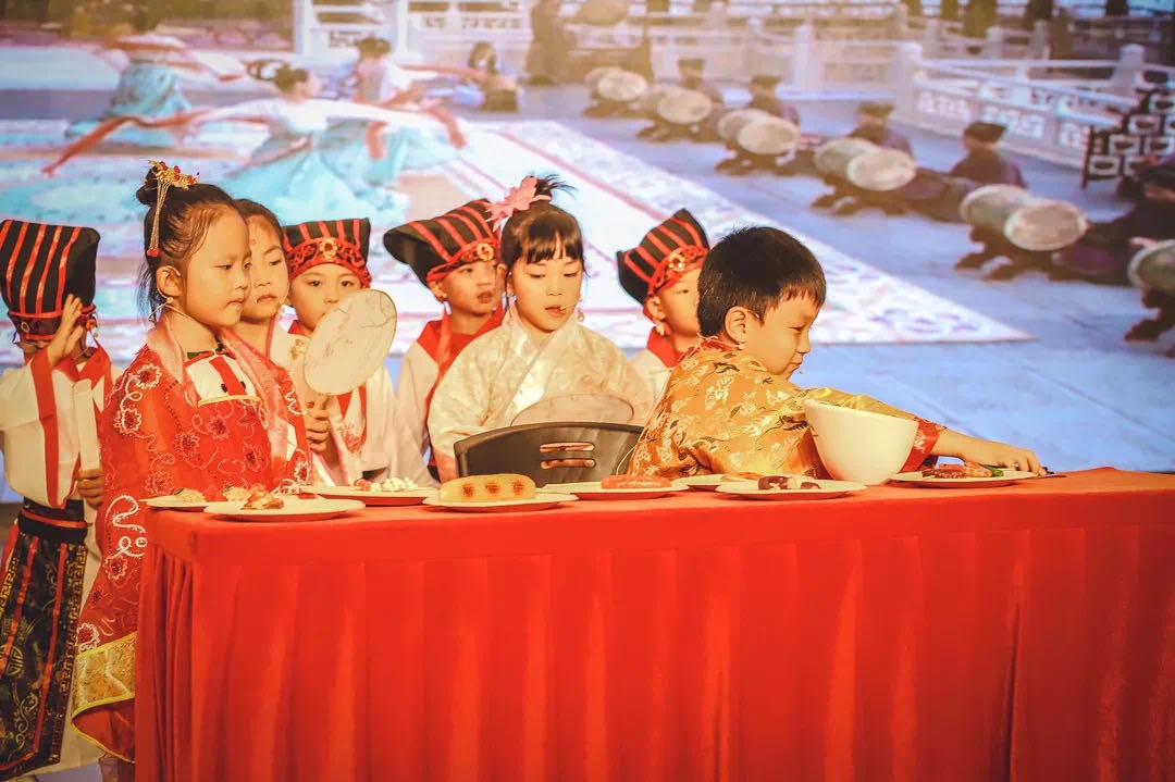 阿基米姐姐的故事生动有趣,还有良渚文化村的孩子们带来精彩的绘本剧《公小筷和公小勺之爱用公筷的皇帝》童趣可爱,现场笑声不断。今日“宋高宗”的夜宵竟然是烧烤,穿着粉色宫装的小女孩们饰演宫女,依次端上“宋高宗”想要的烧烤,童稚可爱的语调引得全场笑声掌声不断。