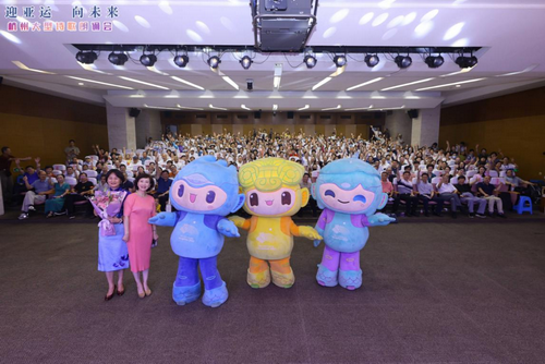亚运吉祥物与现场观众同庆亚运